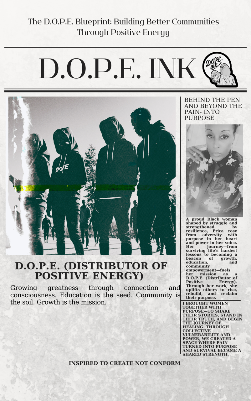 D.O.P.E. IDEAS, LLC is more than a business we are a social enterprise that plays a pivotal role in addressing mental health issues within communities, providing innovative solutions that foster healing and support by creating environments where individuals can openly discuss their experiences and feelings.